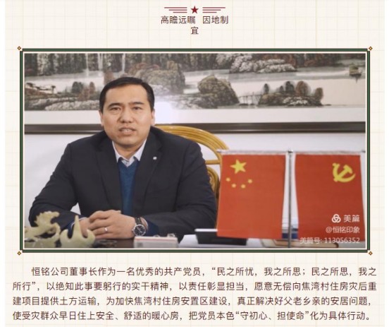 【用行動詮釋責任 以責任彰顯擔當】——恒銘金屬援建焦灣村災后住房重建暨固溝保土生態建設工程啟動