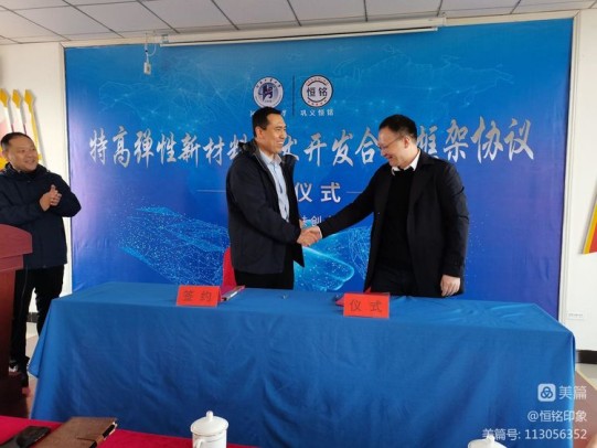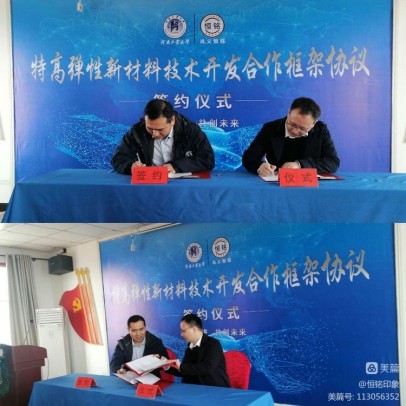 2021年11月21日,鞏義市恒銘金屬制品有限公司與河南工業大學康克家博士團隊合作開發特高彈性材料簽約儀式暨共建“新材料技術研究中心”授牌儀式,在公司三樓會議室隆重舉行。