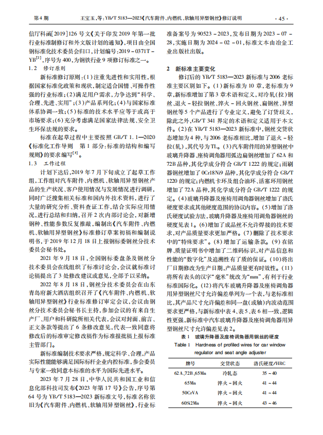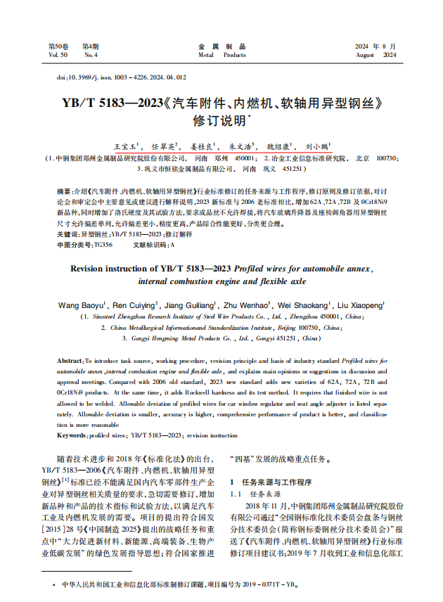 YB/T 5183-2023《汽車附件、內燃機、軟軸用異型鋼絲》