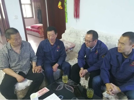 4月21日公司副總經理朱文浩,支部書記王建中 ,總經辦主任焦延偉,代表公司看望生病員工潘憲偉,并了解病情和生活情況。